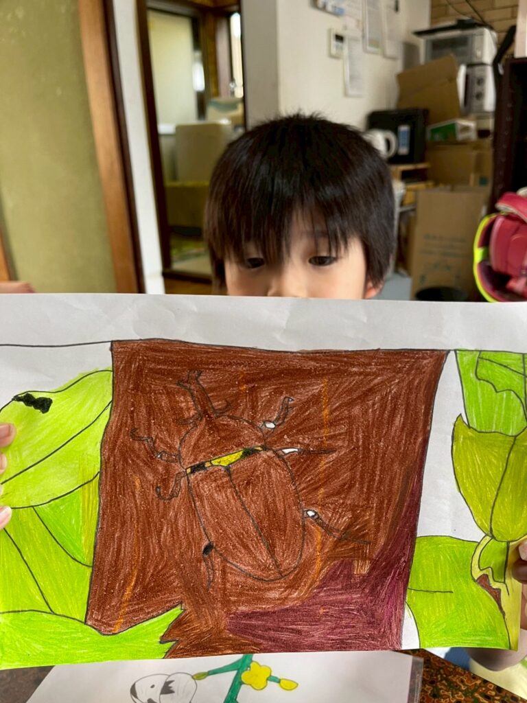 カブトムシを描いたよ~と教えてくれました。