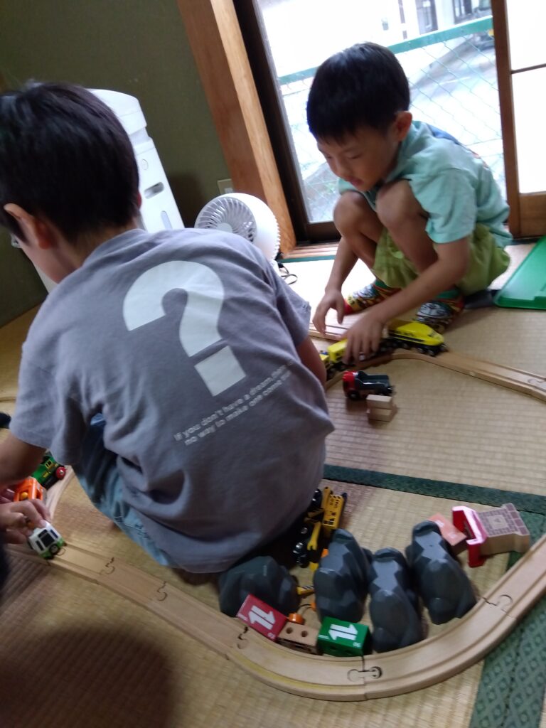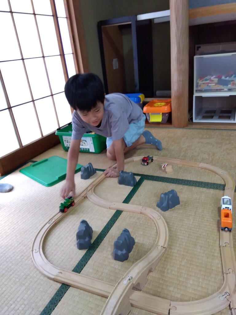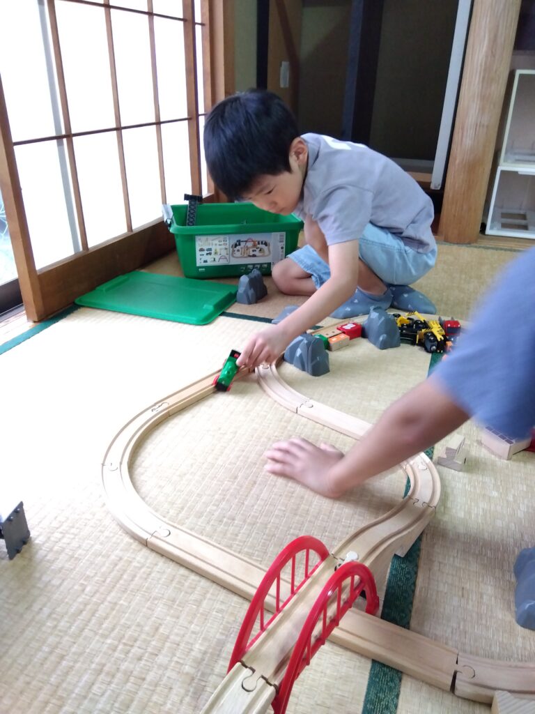 遊びました。決まった数のレールを自分でどう繋げたらいいのかを