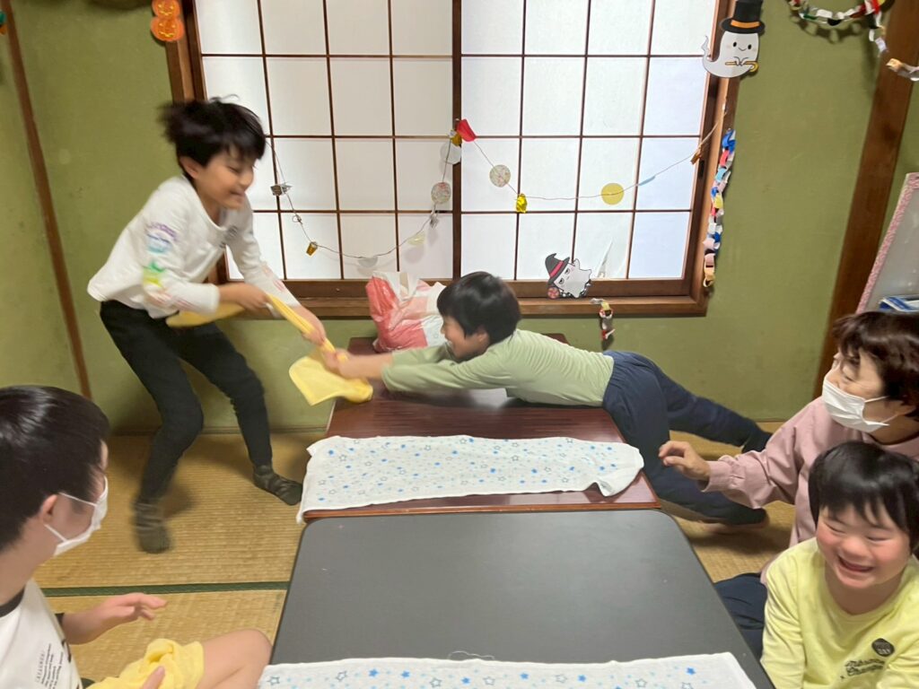 第2回タオル引っ張り合戦です!