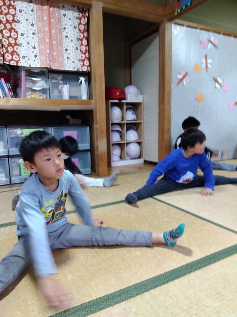 ラジオ体操をした後、ストレッチをしますと「足が痛い〜🥹」「まっすぐ足伸ばせるよ!」「楽しい🎶」等色々な声が子ども達から聞けました。楽しく参加できたようで良かったです🥰