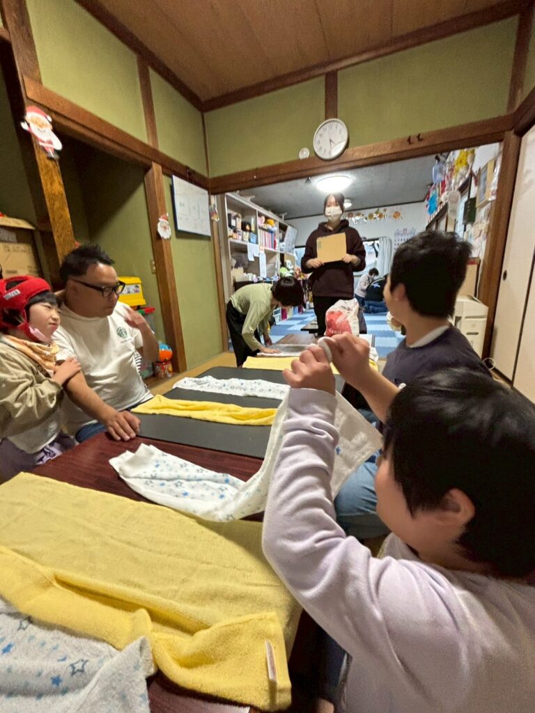 みんなで、タオル取り対決を楽しみました。