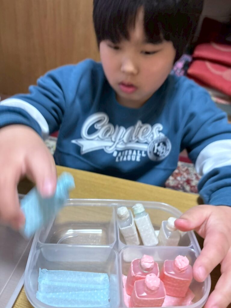 色に合わせて容器の中にいれました。