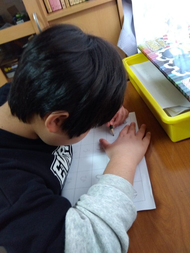 名前を書く練習! なぞり書きをしたあと、一人で書けたよ!