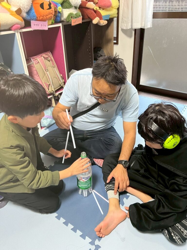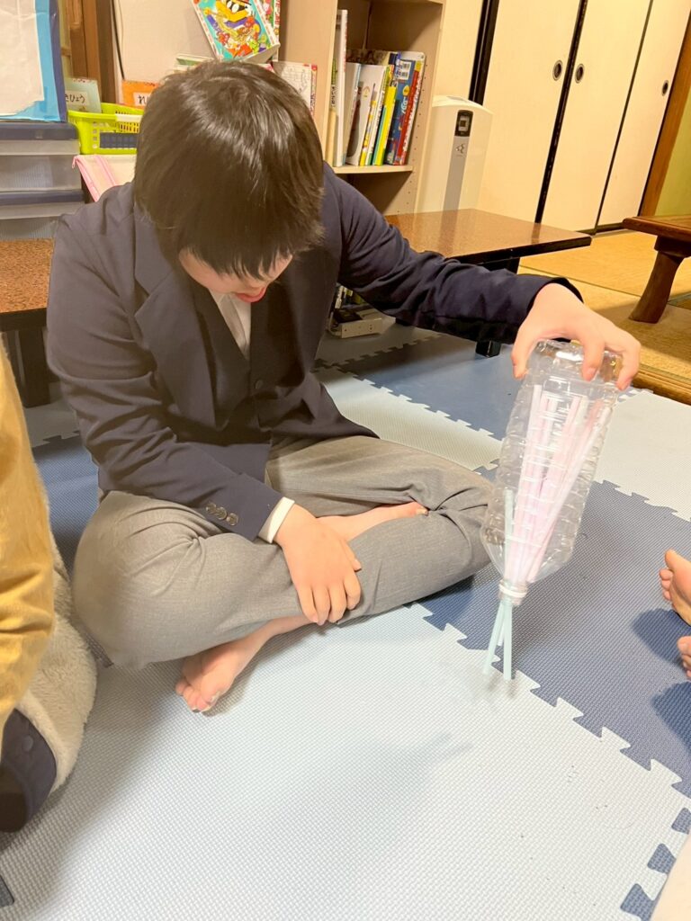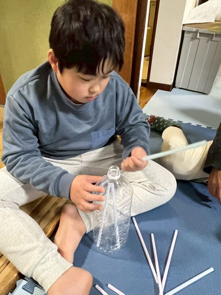 ペットボトルにストローを入れたり、出したり