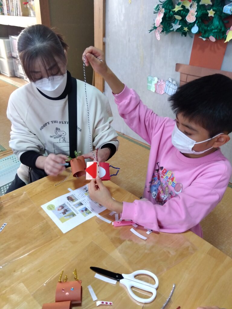 説明書や見本をみながら、紙を手で丸めたり、パーツを貼ったりと手先を使う練習になり良かったです🥰