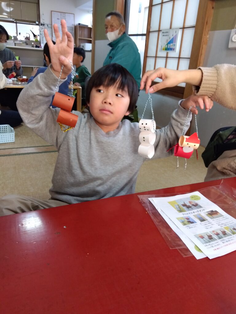 サンタクロースとトナカイ、雪だるまの3種類を作り進めてもらいました。