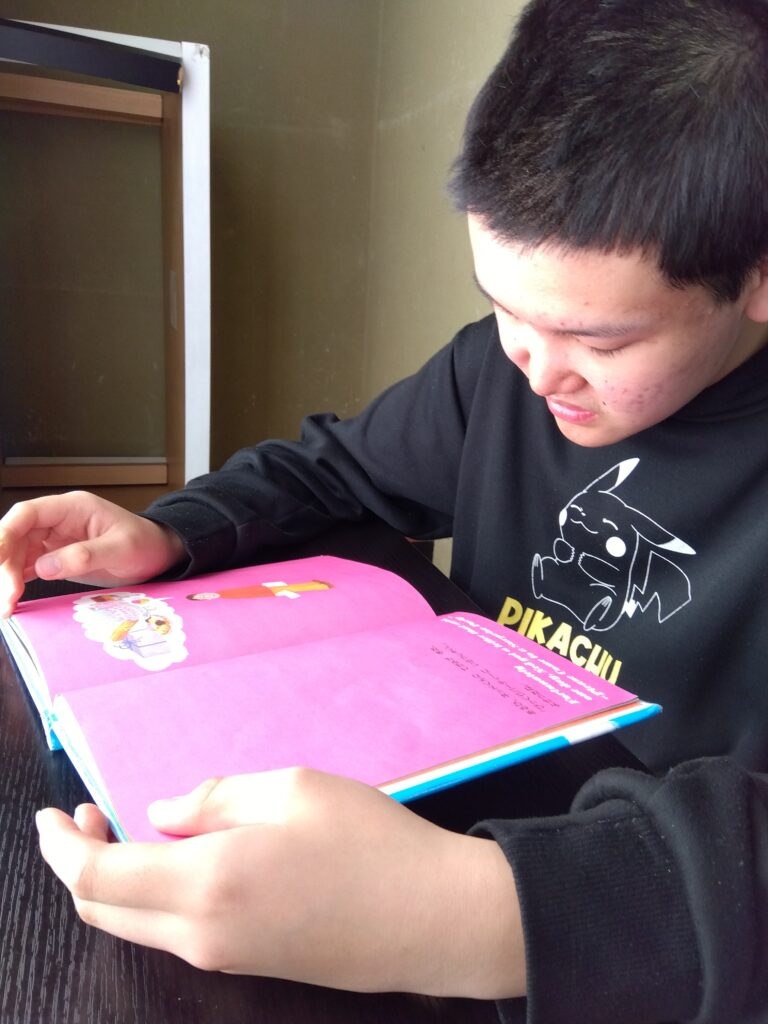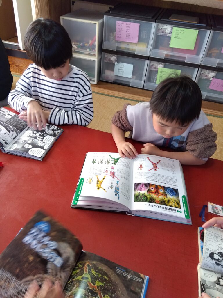 読みたい本をじっくり探し、お気に入りの本が見つかると興味津々にうれしそうに本を読んでいました。
