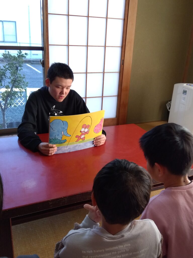 図書館で借りた紙芝居を高校生のお兄さんに読んでもらいました☆