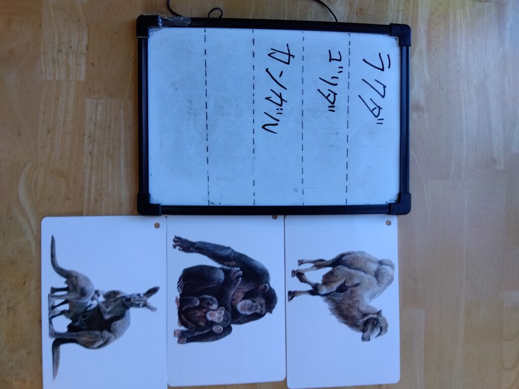 一人は5枚、もう一人は3枚カタカナを書いてもらいました。