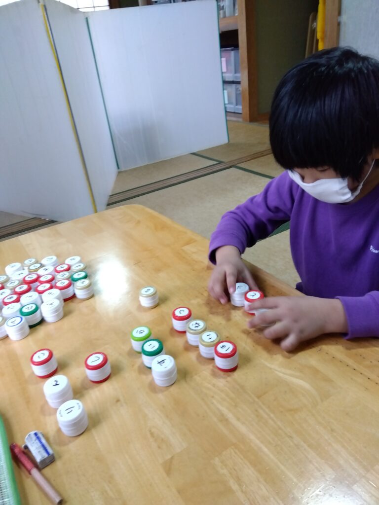 課題では文字キャップで果物の名前を並べ楽しく学びました。