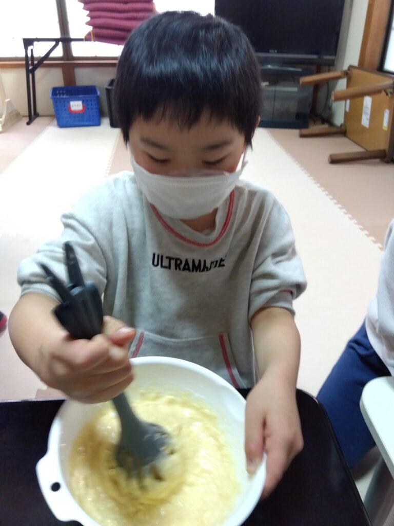 卵を割る人、牛乳を量る人それぞれ担当を決めてから作り始めました!