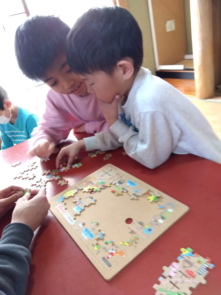 こんにちは。富士市三ツ沢にあります放課後等デイサービスななごうめです。今日は昨日より日差しが見られ暖かかったように感じます。 最近、都道府県パズルにはまっていて協力しながら完成させていました。