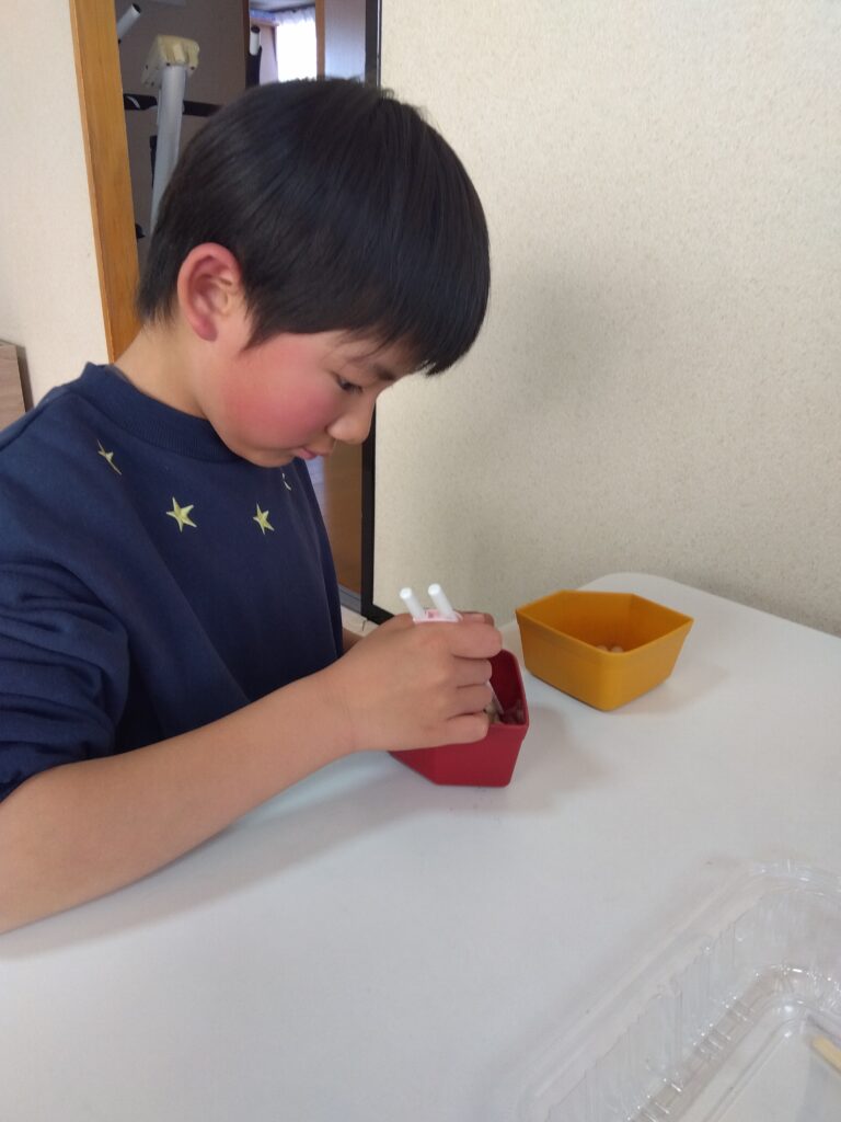 先ずは個別課題だね! 上手にお箸を持てるようになったね!