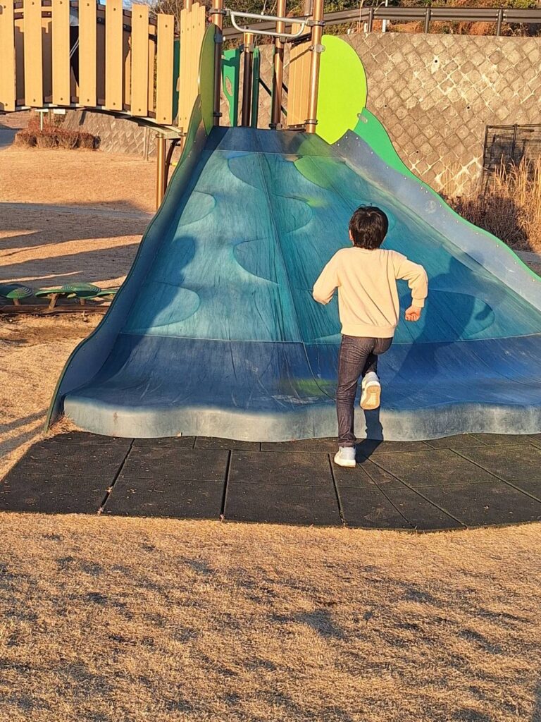 ピー!すべり台は下から登ってはいけませんよ〜 はーーい!