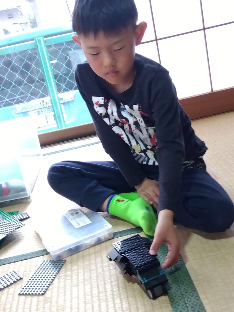 こんにちは。富士市三ツ沢にあります放課後等デイサービスななごうめです。今日はのんびり室内で遊びました。レゴで作った車を見て「カッコイイね」と感想を伝えられると「簡単だったよ」と会話が。今度は教えてもらって一緒に作れるとイイね♪