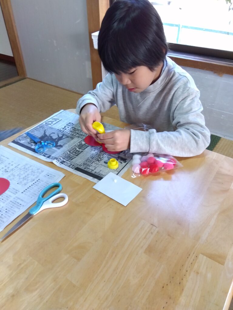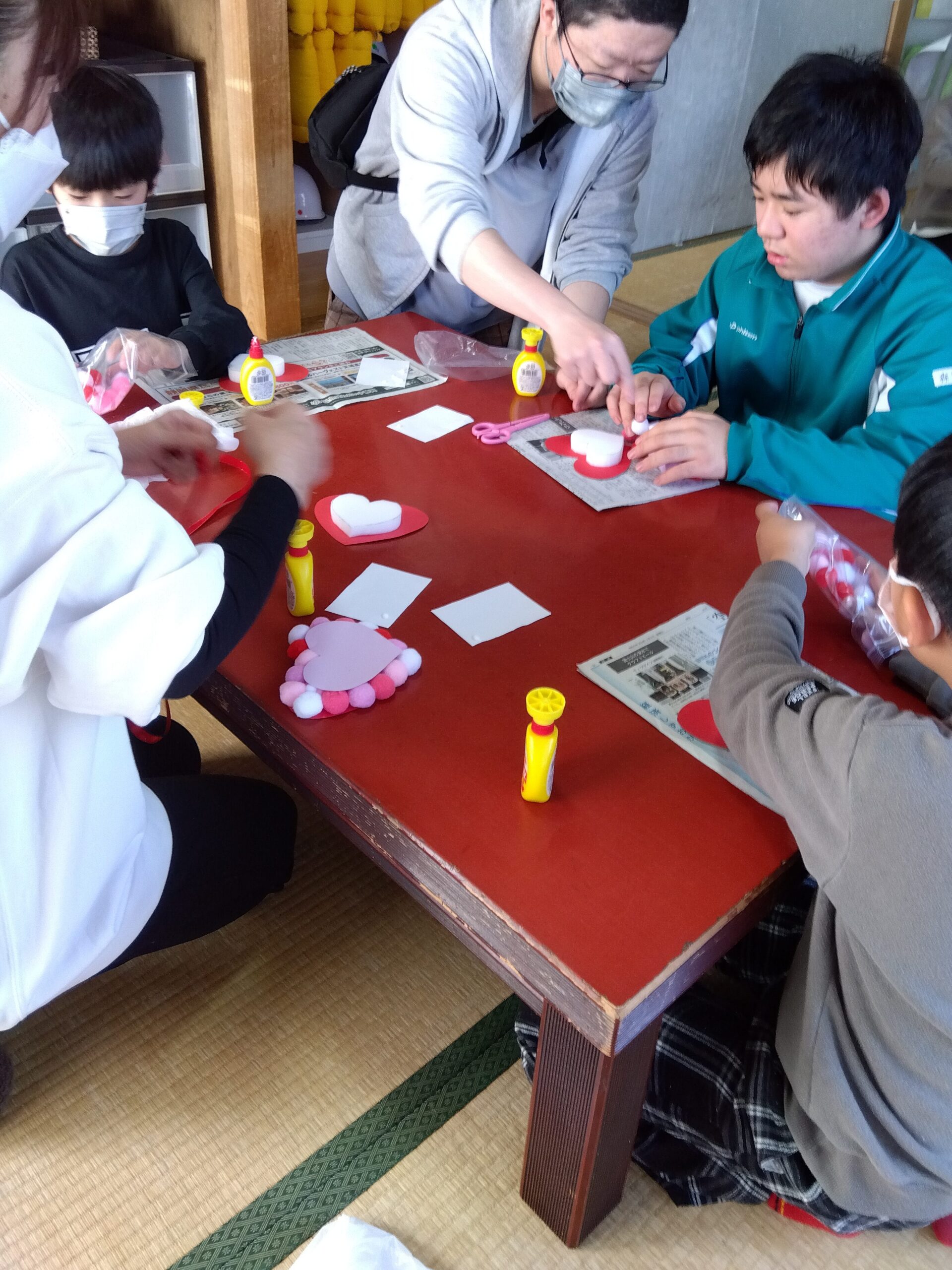 こんにちは。富士市三ツ沢にあります放課後等デイサービスななごうめです。今日は活動プログラムで工作を行いました。明日はバレンタインデーですね。お母さんへ感謝のメッセージを書きました。