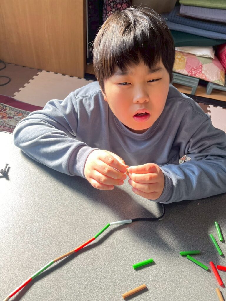 一つ一つゆっくり丁寧に通していました。