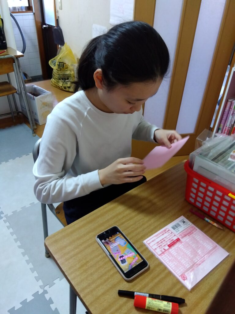 私は折り紙でスマートフォン型のうさぎを作ったよ😊 ぼくは本を読んでるよ!