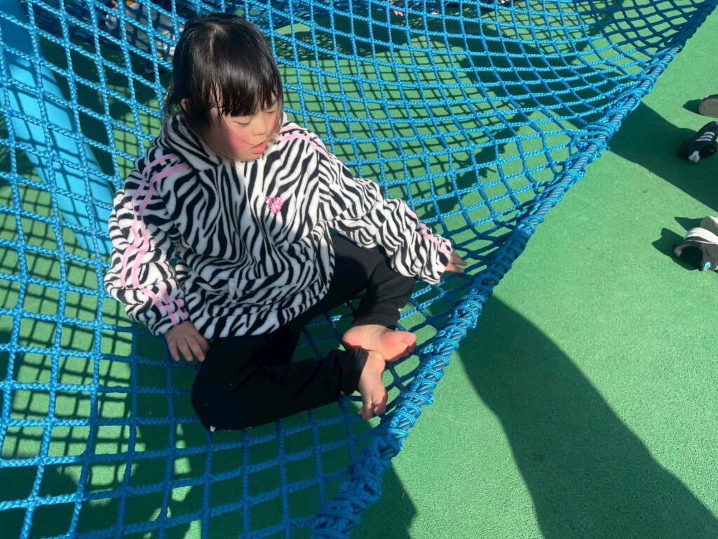 ネットを登ったり、滑り台を滑ったり。