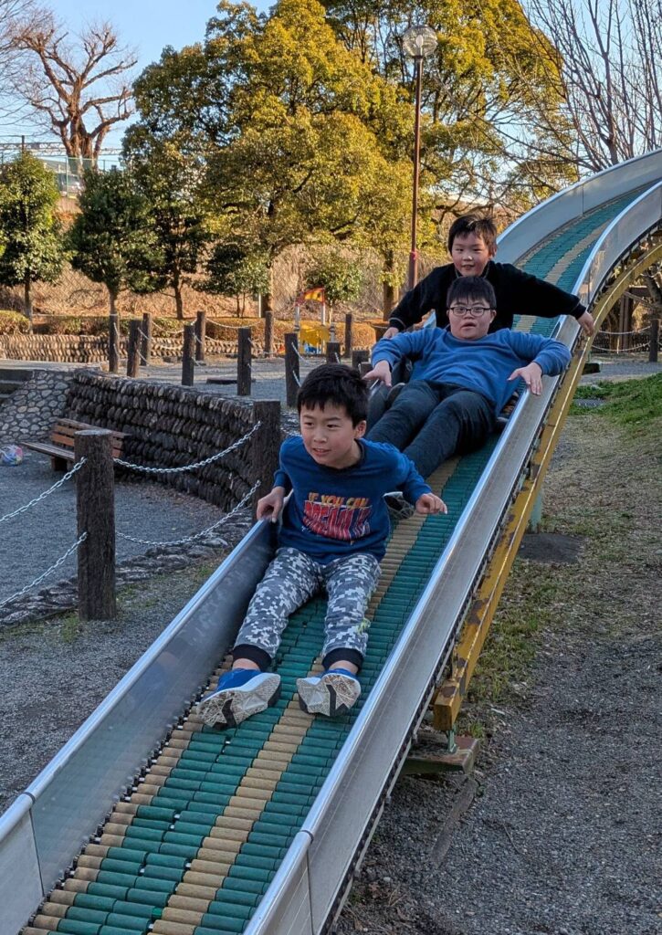 みんな元気に走り回ったね! 次はローラー滑り台へ行ってみよう
