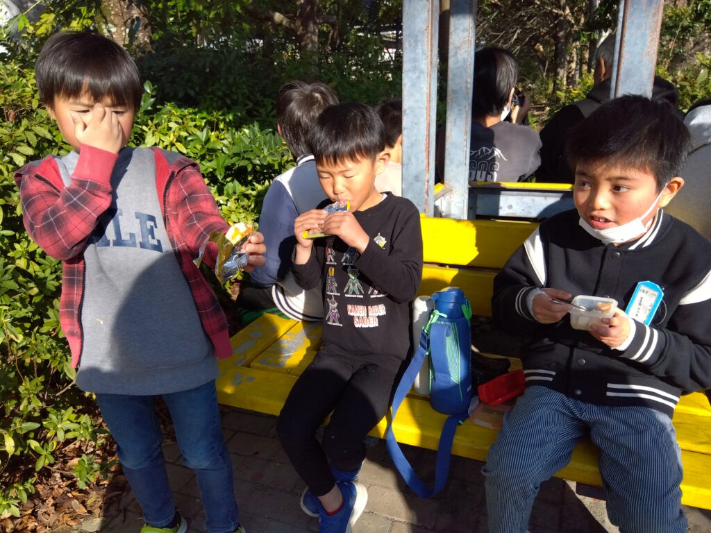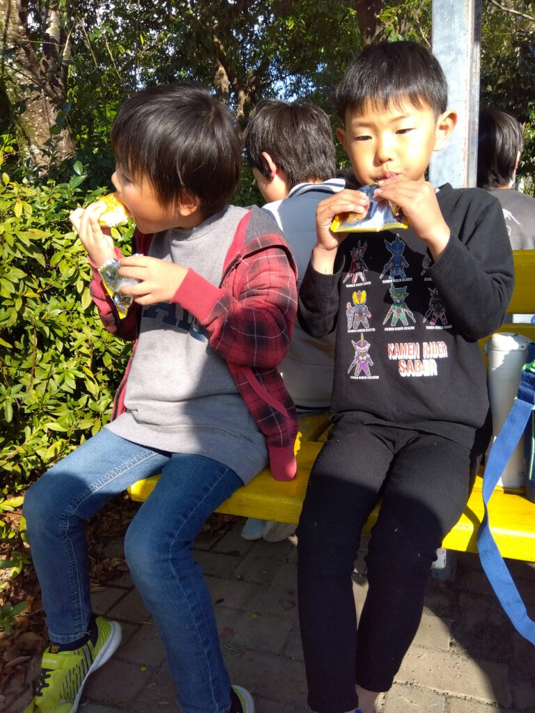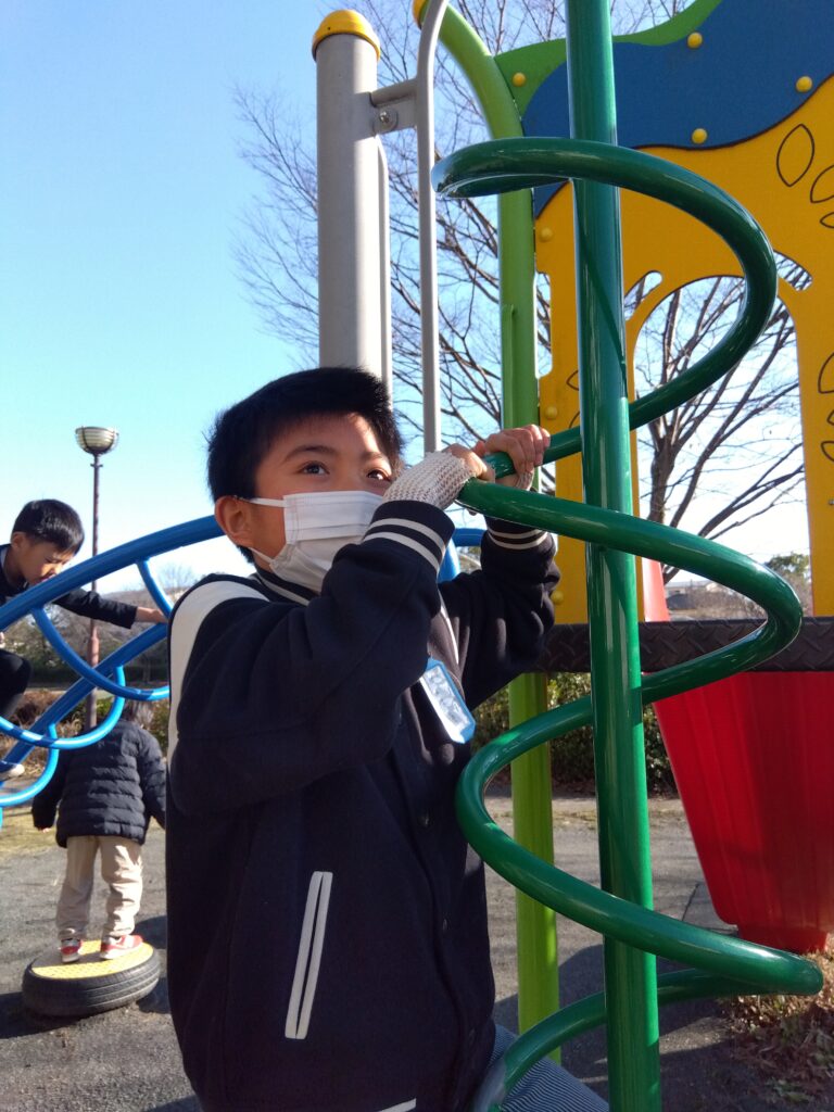 公園でおやつを食べた後、遊具で楽しく遊びました♪