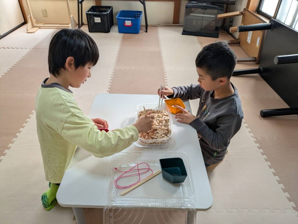 先ずは一緒にお箸の練習を頑張りました💮