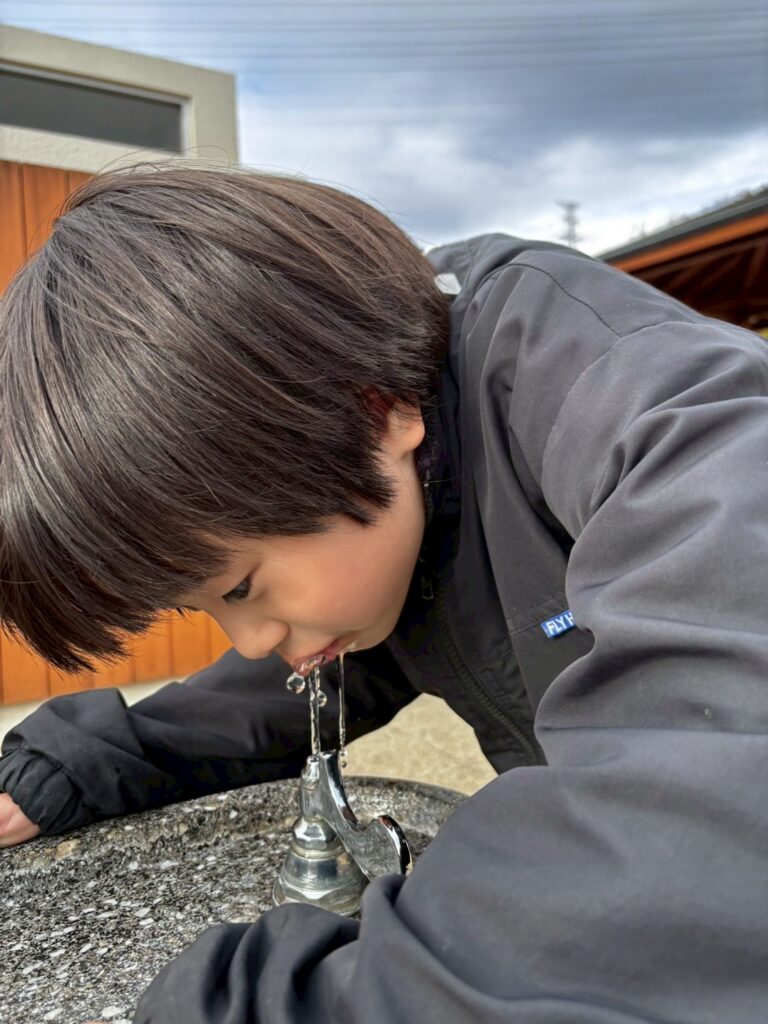 水道で水分補給です。