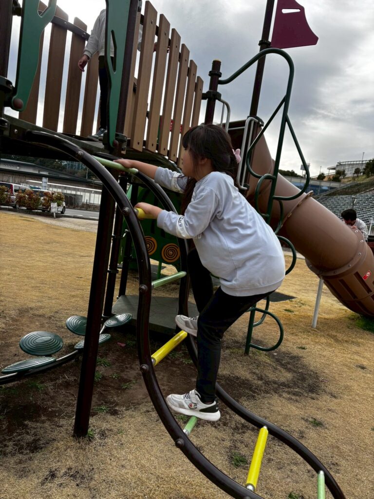 滑り台で遊んだり
