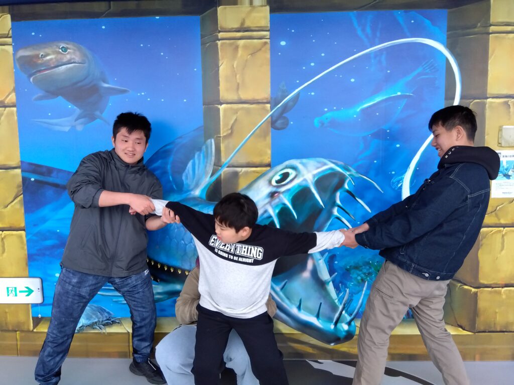 うゎ〜すごい! 魚に食べられちゃうよ〜