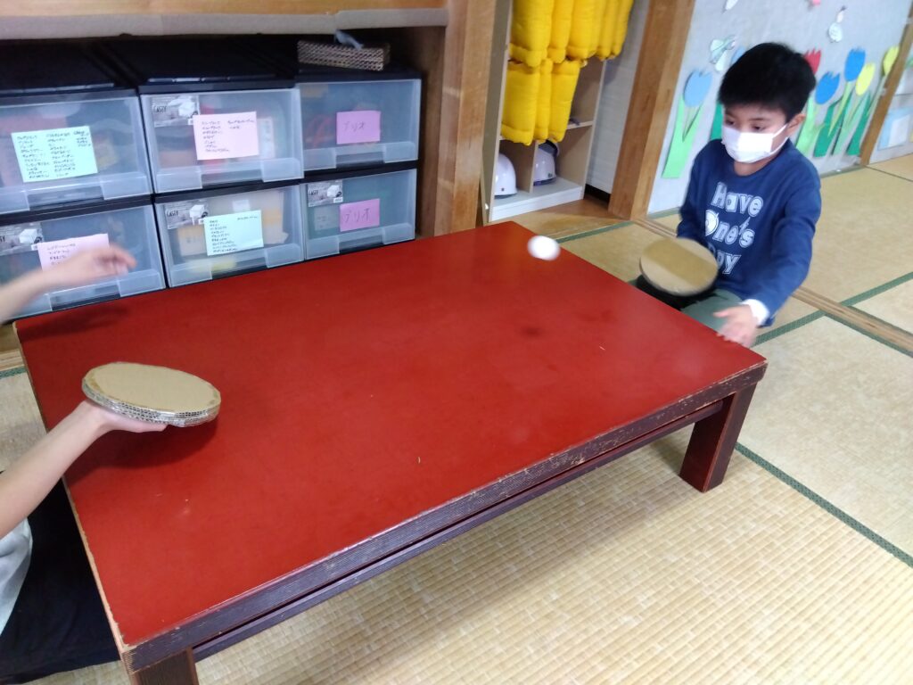 本日は室内遊びでトランプとピンポンゲームを行いました。