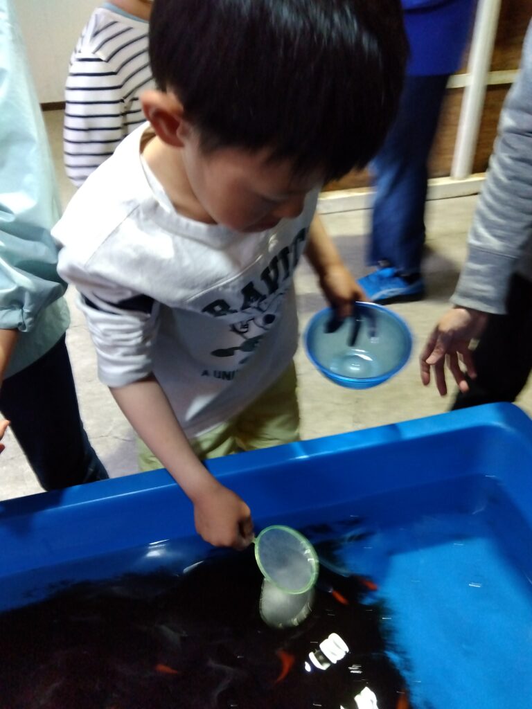 初めて金魚すくいを行う子供も多く、みんな真剣に楽しそうに行うことができました。