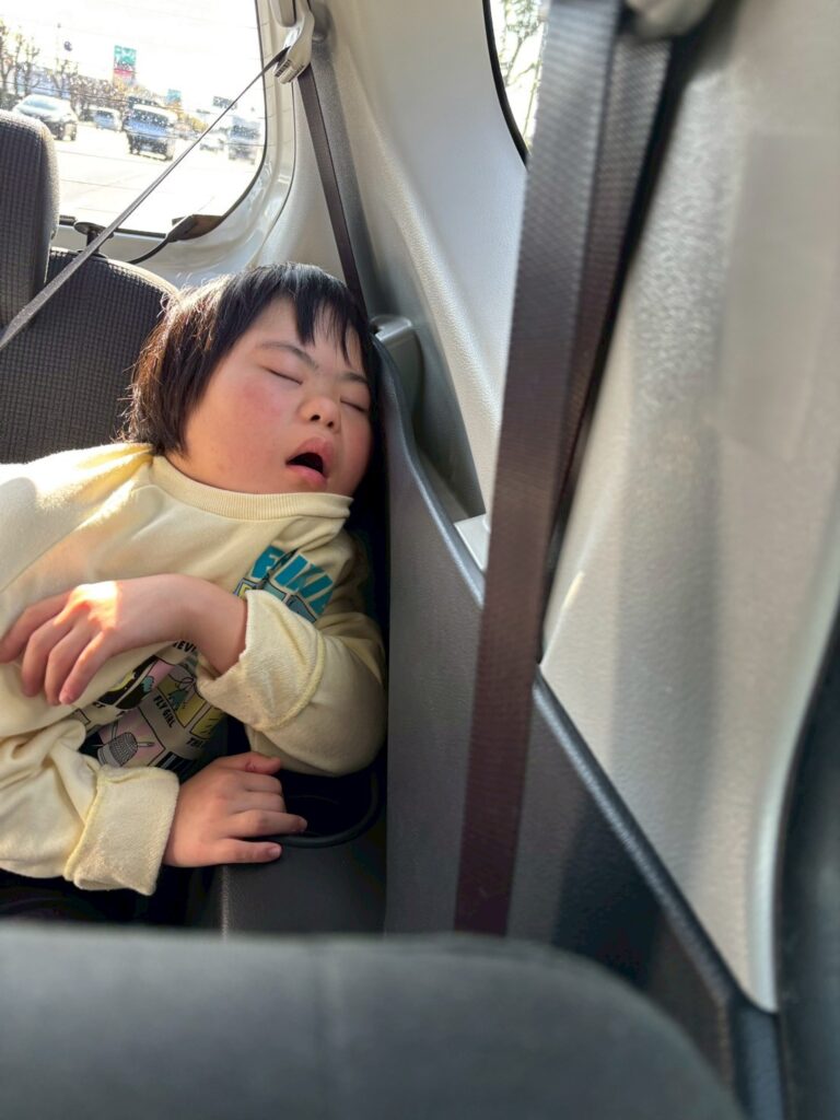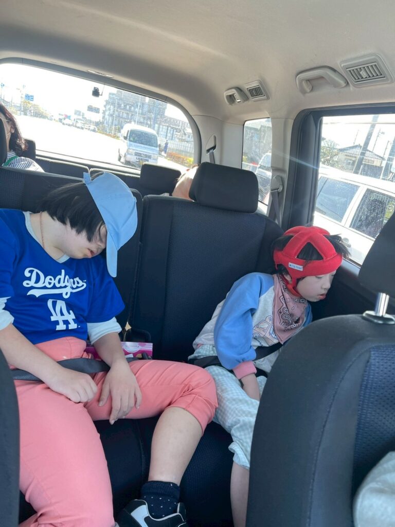 たくさん歩いて、帰りの車の中は
