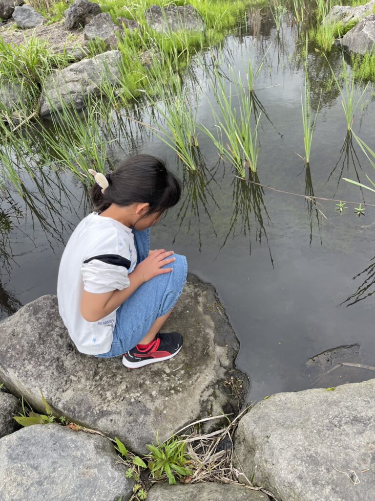 オタマジャクシを見つけたようです。