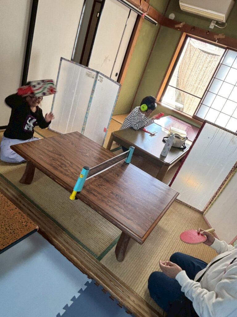 部屋で卓球などをして過ごしました。