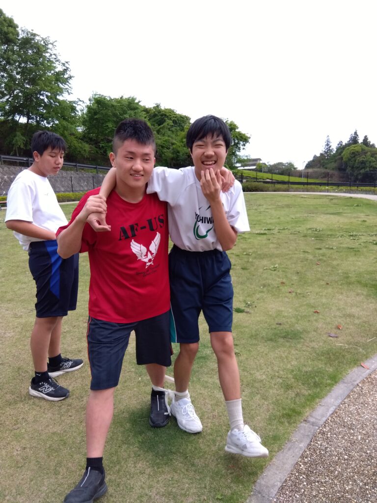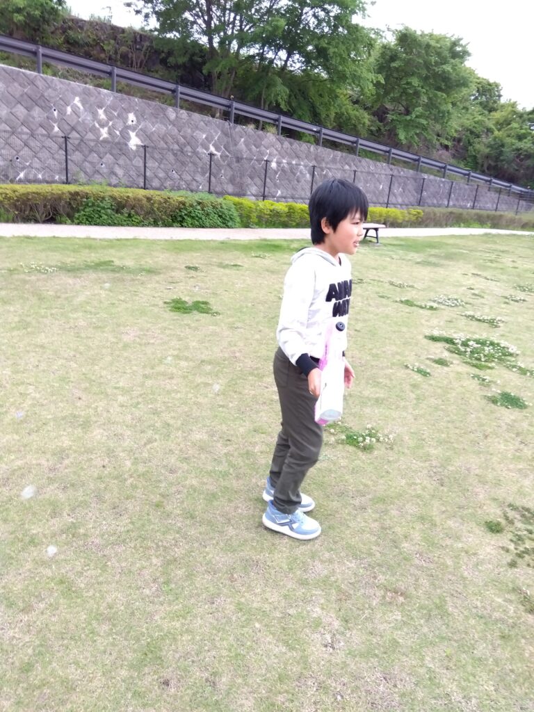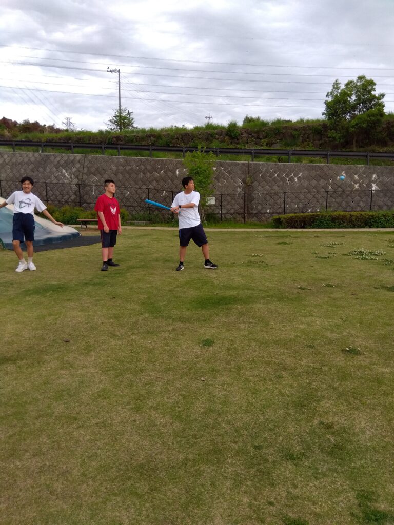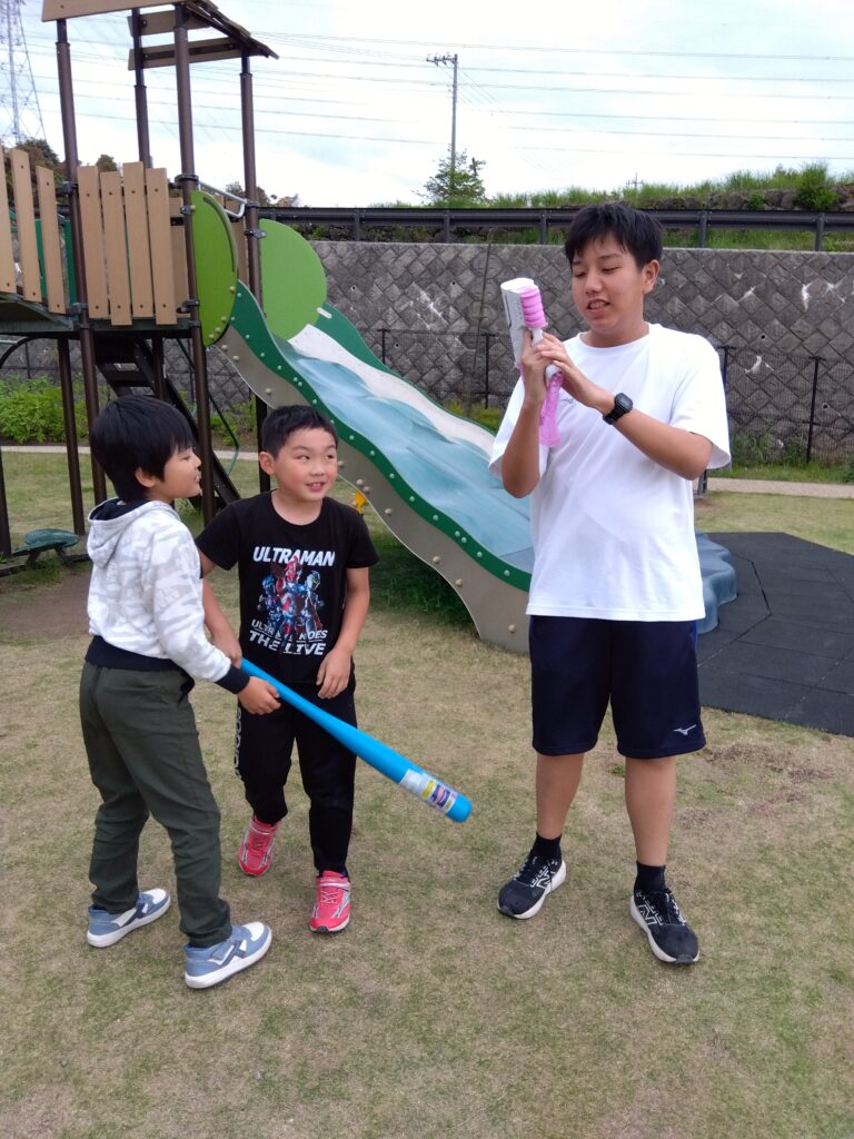 小学生は遊具やシャボン玉で遊び、中高生は二人三脚や野球をして遊びました!