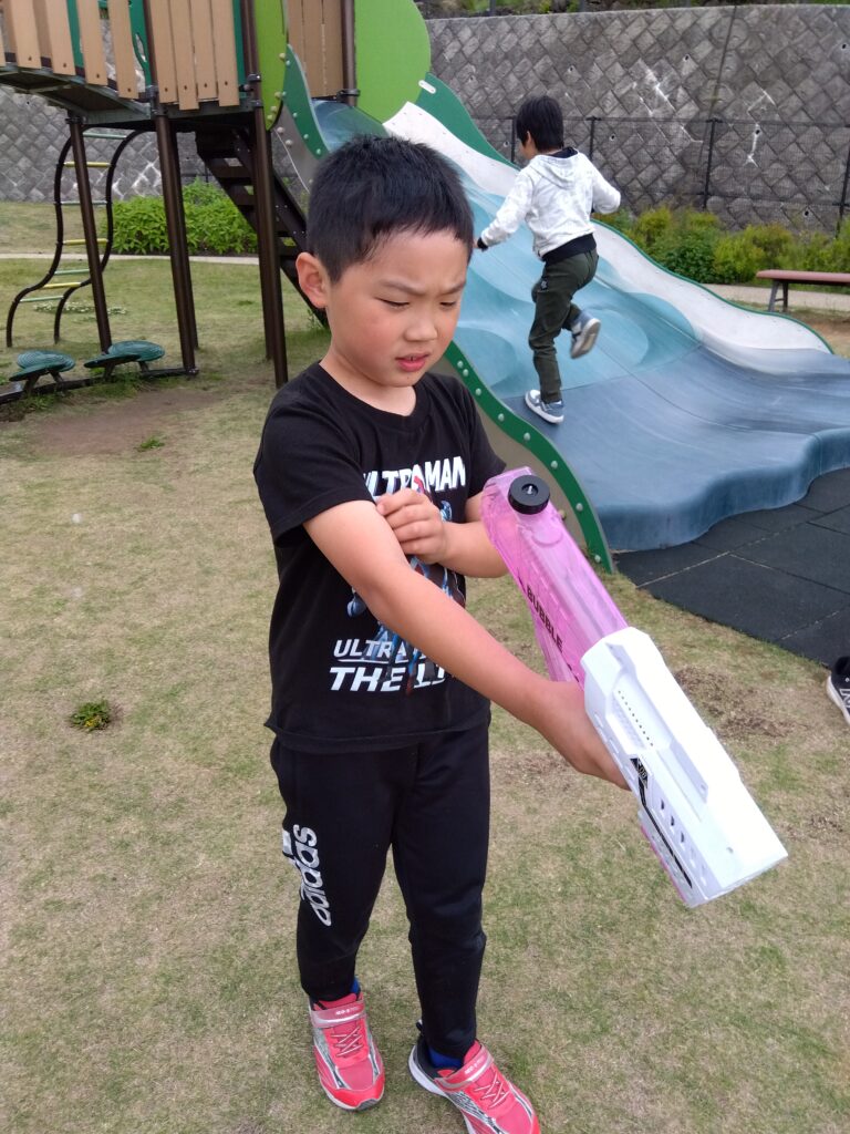 シャボン玉で攻撃だー!