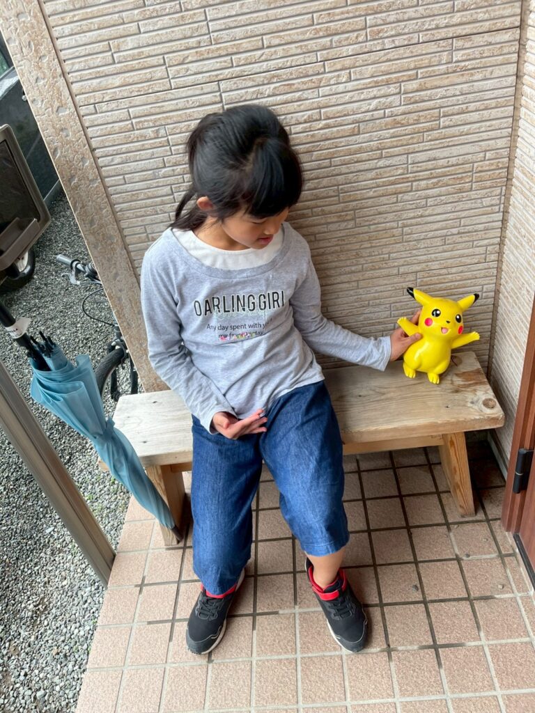 玄関の前で、少しピカチュウと玄関の前まで出てみました。