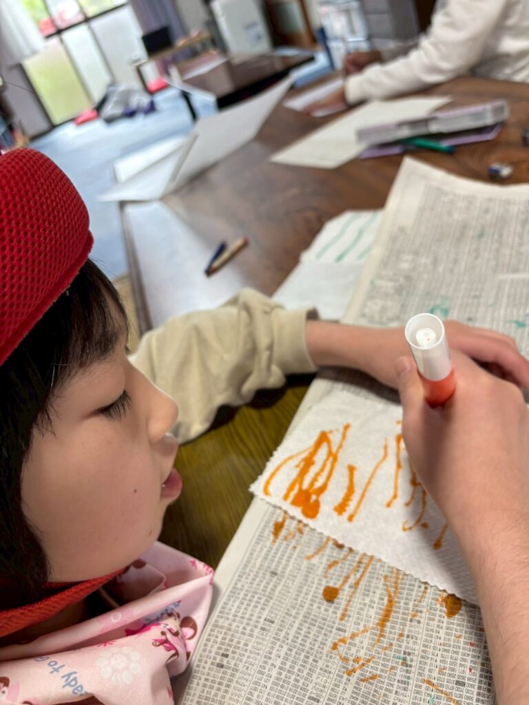 水性ペンの色が滲んでいく様子も
