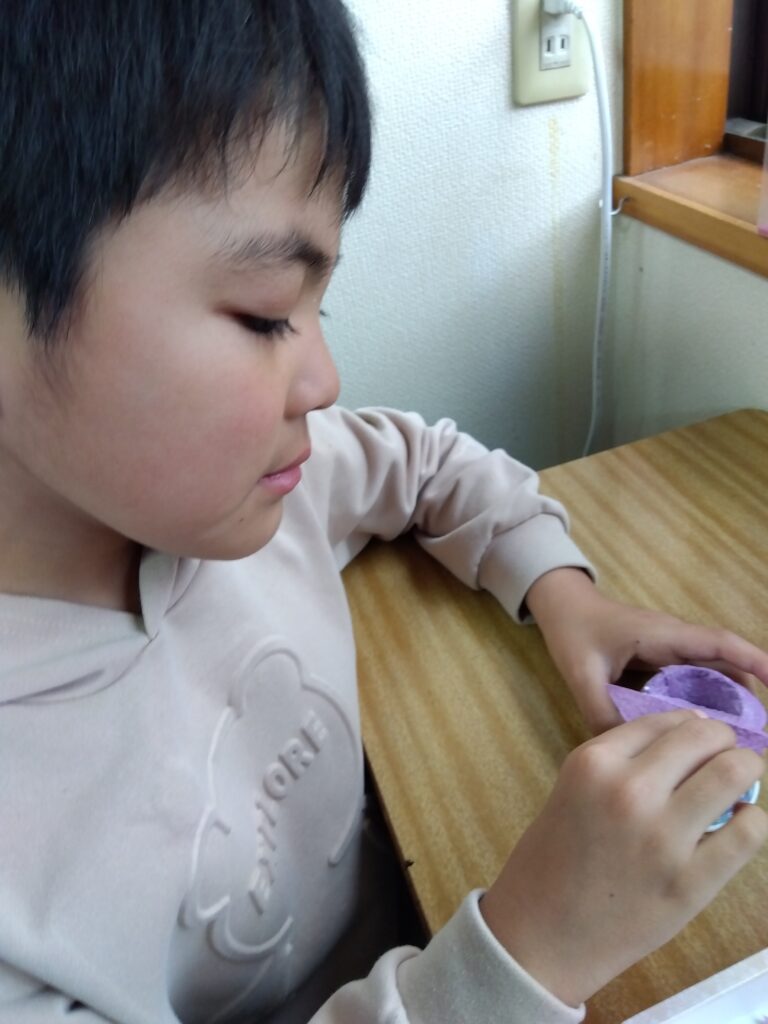 お母さんの好きな色を紙に塗り…、何ができるかな🤔