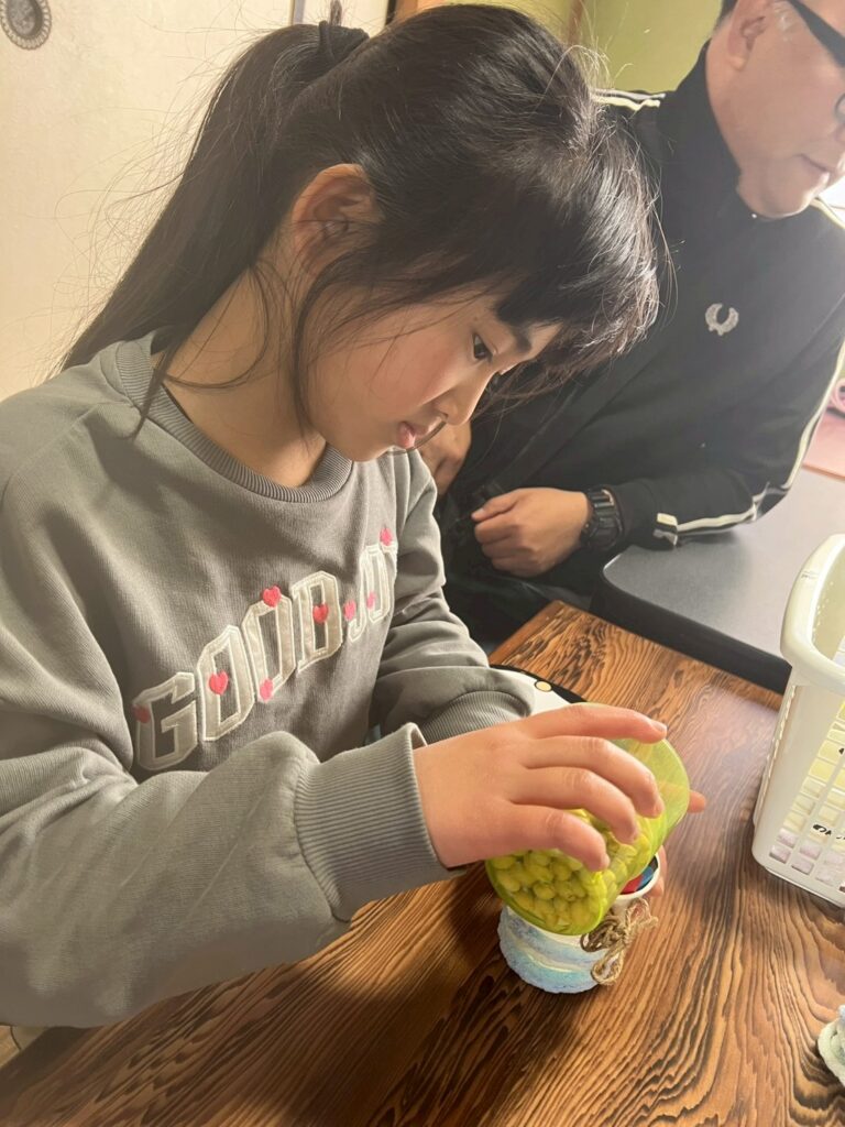 お豆を分けるお手伝いは