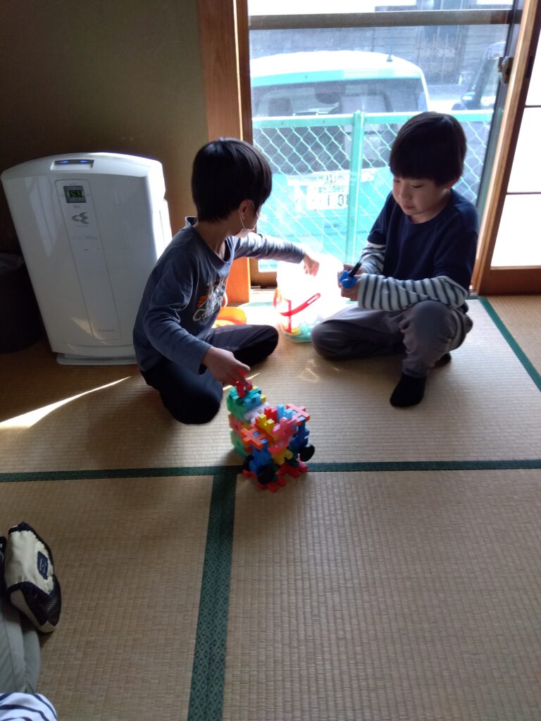 今週も今日で最後ですね。子ども達は今日も元気で、仲良く楽しくお部屋で遊んでいました😀。