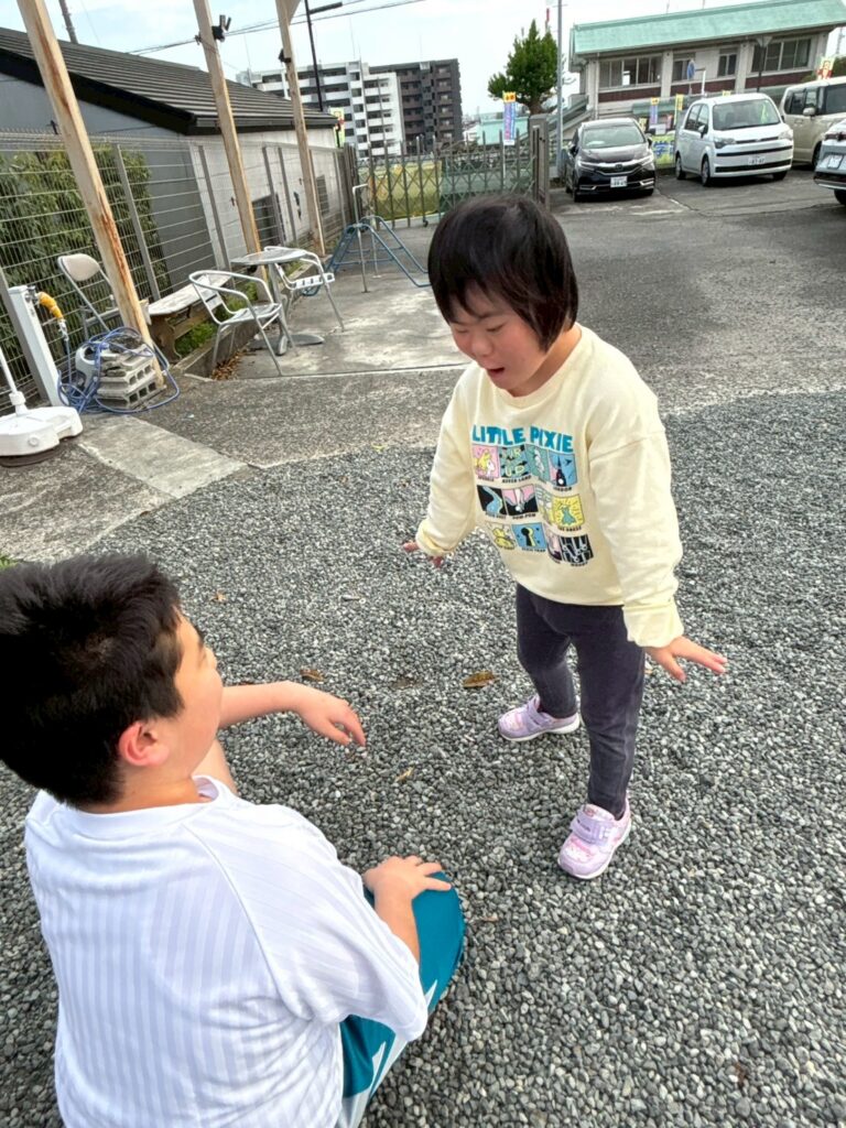 お兄ちゃんは、目線を合わせて向き合ってくれます。