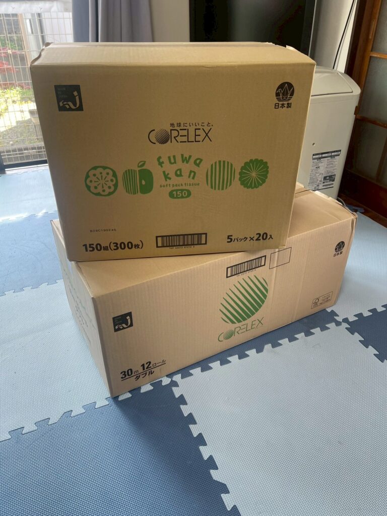たくさんのティッシュと、トイレットペーパーの